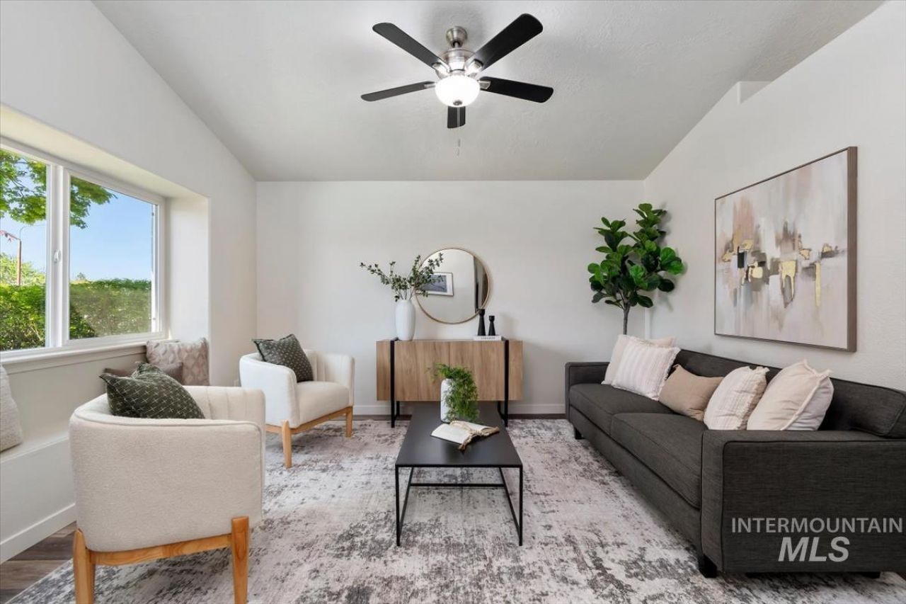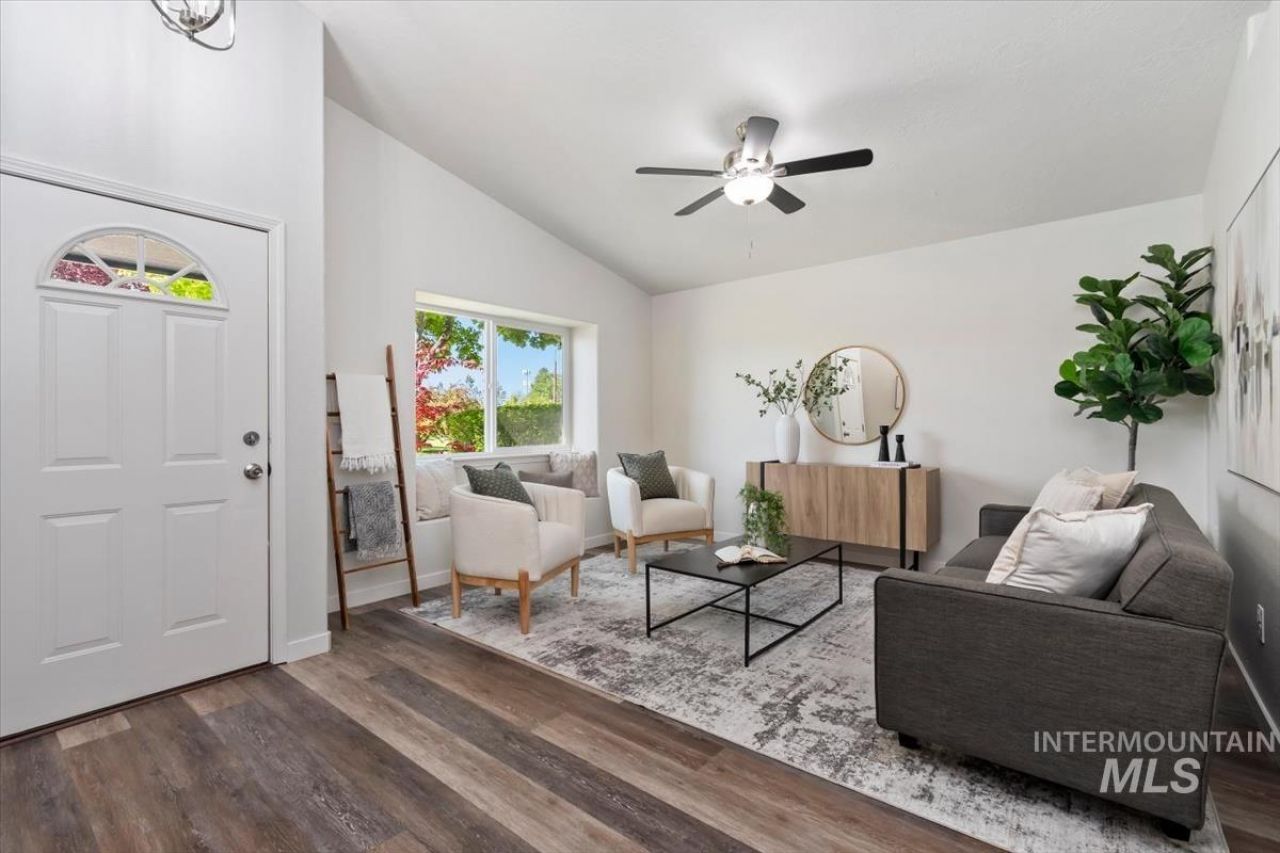 Charming single-level home nestled in a centrally located Meridian neighborhood, offering easy freeway access and amazing proximity to top-notch amenities, including Scheels and the new Ten Mile Crossing shopping/dining center. Thoughtfully designed to maximize the homes footprint, the flowing layout blends efficiency and comfort with fresh updates throughout. Durable LVP flooring harmoniously complements the neutral paint palette, creating a soothing and cohesive feel. The well-appointed kitchen features stainless steel appliances, ample prep space, and a pantry for added storage. Light-filled master retreat boasts an ensuite bath and direct patio access?perfect for enjoying a quiet morning coffee or evening beverage. Bonus space accessible from the garage and backyard offers versatility as a rec room, private hobby studio or home office - the possibilities are endless! Shaded by a pergola, the patio provides an ideal setting for entertaining or relaxing, surrounded by lush green grass and vibrant flowers. Recent updates in 2026 include new AC, dishwasher, water lines, hot water heater, painted garage floor, furnace (2022) and newer roof (2022) making this a rare find for owner occupants or those seeking a turnkey investment property.