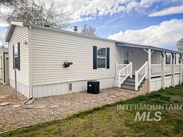 Motivated Seller! Enjoy comfortable living in your own home in tranquil Blue Valley Lakeside Community in Southeast Boise. This manufactured home has a full covered front porch area to relax and/or be protected from rain and snow. The kitchen boasts a full open breakfast bar and gas appliances. Quiet time awaits in your master bath jetted tub or walk-in shower. Newly painted, convenient shed, 2 driveways, ceiling fans and washer/dryer and refrigerator included. Come take a look! Manufactured lenders list available.