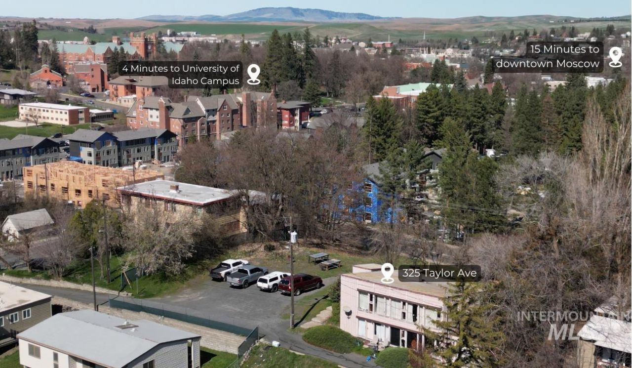 Literally next to the University of Idaho campus, this Moscow classic offers an exceptional opportunity for both investors and homeowners alike. Featuring 4 bedrooms, 2 bathrooms, and an included buildable lot, this property combines immediate livability with long-term potential. Perched in a desirable hilltop location, the home captures scenic views and abundant natural light throughout. The open-concept main level showcases an elevated, open-beam ceiling spanning the living, kitchen, and dining areas?creating a bright and inviting space ideal for everyday living or entertaining. The tri-level layout offers a functional and flexible design, with two bedrooms and a full bath upstairs, and two additional bedrooms, another full bath, and laundry space on the lower level?well-suited for both owner-occupants and rental use. With a proven track record of over a decade without vacancy, this property highlights the strength of its location and layout. The additional lot significantly expands the possibilities, offering ample parking and future development potential. Zoned R-4, options may include a single-family residence, duplex, or larger multi-unit project (buyer to verify). A 288 SF one-car garage adds convenience for parking or storage, while the combined lots provide enhanced flexibility, usability, and long-term value. Opportunities like this?steps from campus are rare!