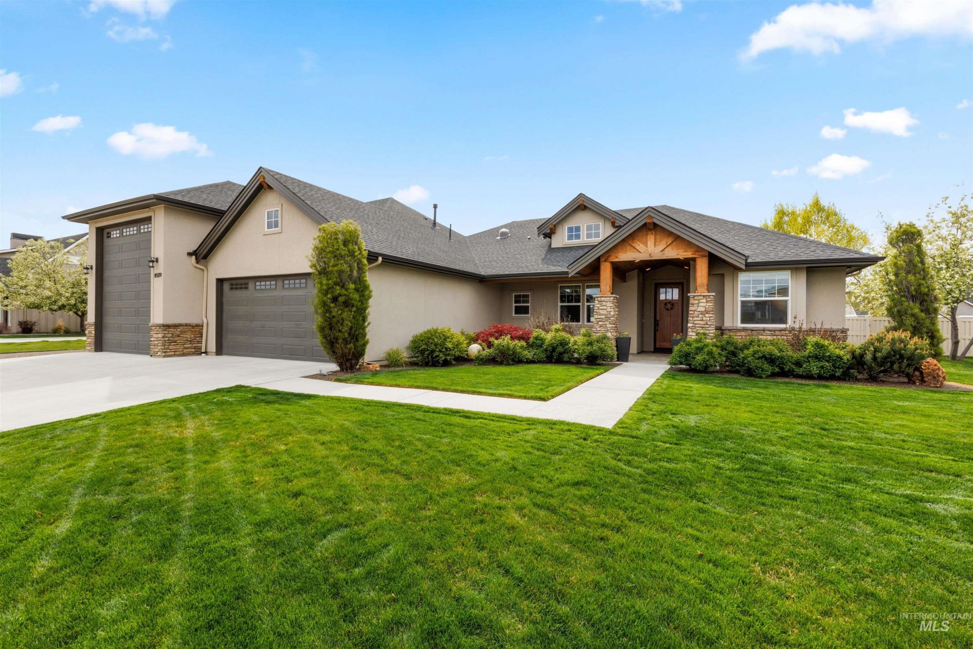 This former Parade of Homes residence showcases thoughtful design and a generous 0.49-acre lot. A stunning wood-wrapped ceiling on the front porch welcomes you. The property features a 43-foot RV bay, additional RV parking, and an impressive 40x28 detached shop complete with a bathroom and a heated and cooled office?perfect for work, hobbies, or storage. The kitchen is designed for both function and style, boasting a large granite island, Bosch built-in gas cooktop, oven, microwave, dishwasher, and a walk-in pantry that opens seamlessly to the great room. The great room highlights a beautiful wood-wrapped ceiling, custom built-ins, and a stone fireplace. Rich engineered hardwood flooring flows through the main traffic areas, adding warmth and durability. The primary suite is a true retreat with private access to the backyard and shop, a soaker tub, a spacious tiled walk-in shower, and a walk-in closet. Step outside to enjoy the south-facing covered patio ideal for relaxing or entertaining, overlooking a private backyard with a dedicated garden area. Located in a desirable subdivision offering access to a community pool and scenic ponds.