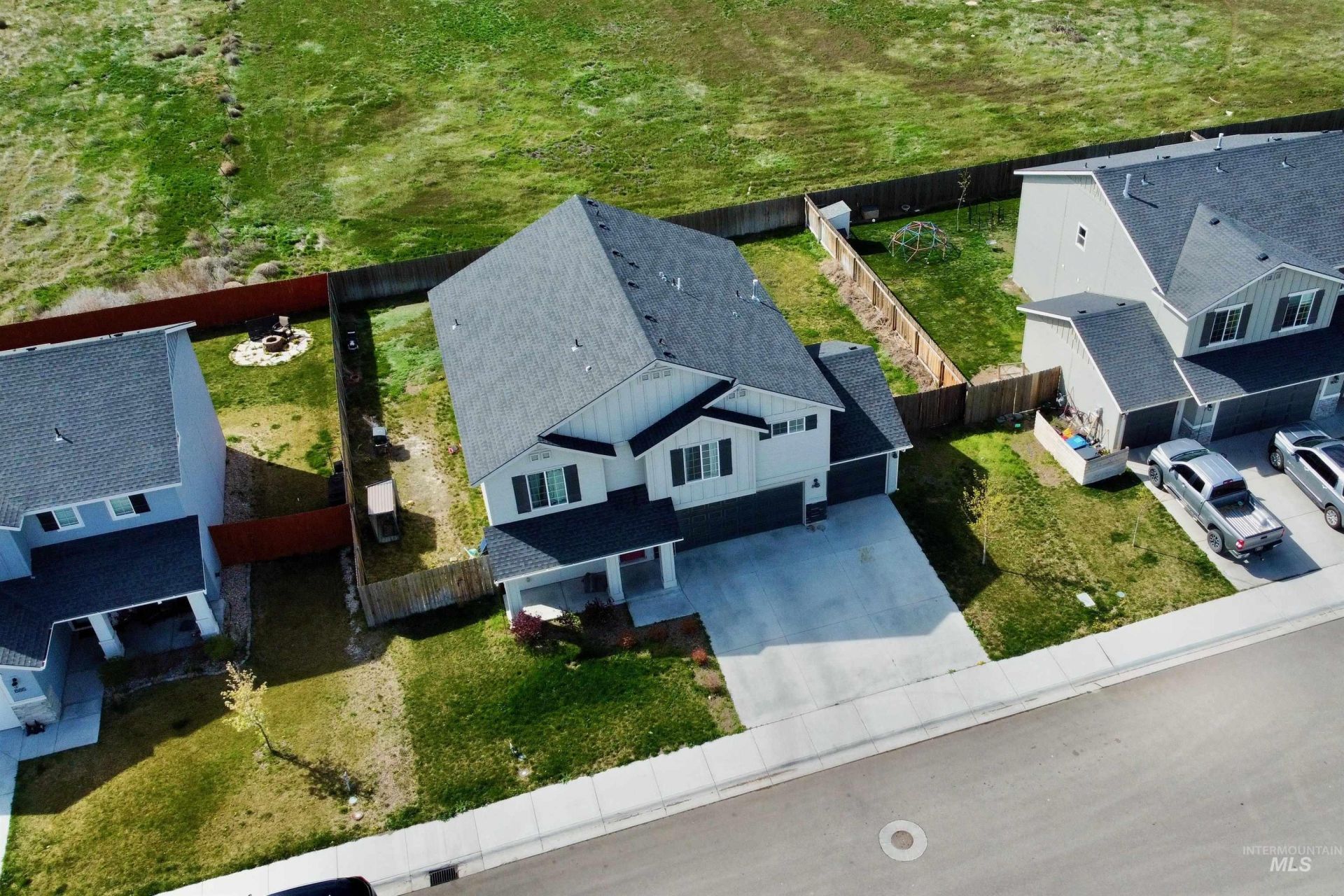 Located in the desirable Morning View subdivision of Mountain Home, Idaho, this stunning two-story home offers the perfect blend of modern style and functional design. The main level features a bright, open-concept kitchen with a large island and window over the sink (fridge included!) that flows seamlessly into the family room, alongside a second living area and a versatile den/office with a half bath. Upstairs, youll find a massive primary suite with an expansive walk-in closet, a large loft area perfect for a media room, and the convenience of a second-floor laundry room (washer and dryer included!). With a spacious three-car garage and a private backyard that opens to peaceful green views with no rear neighbors, this home is an ideal retreat just minutes from MHAFB, local parks, and schools. Plenty of room for RV parking on both sides of the house means you can bring your toys as well! This move-in-ready gem balances private retreats with expansive gathering spaces. Your Idaho sanctuary awaits!